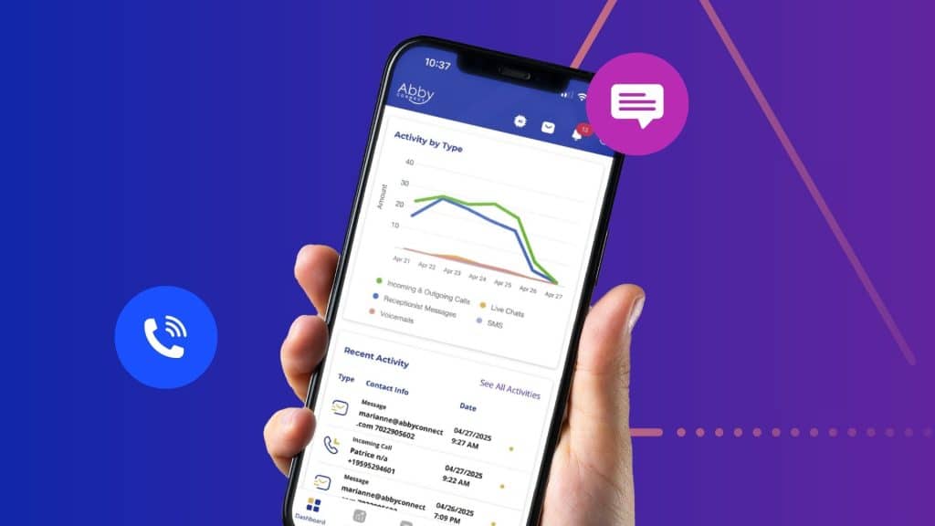 “We love how simple and intuitive the Abby Connect dashboard is, both on desktop and mobile. It keeps our team organized and responsive, and the ability to listen to call recordings right from the app has been a game-changer for improving customer service.” – Ruth A., HR Services Company
