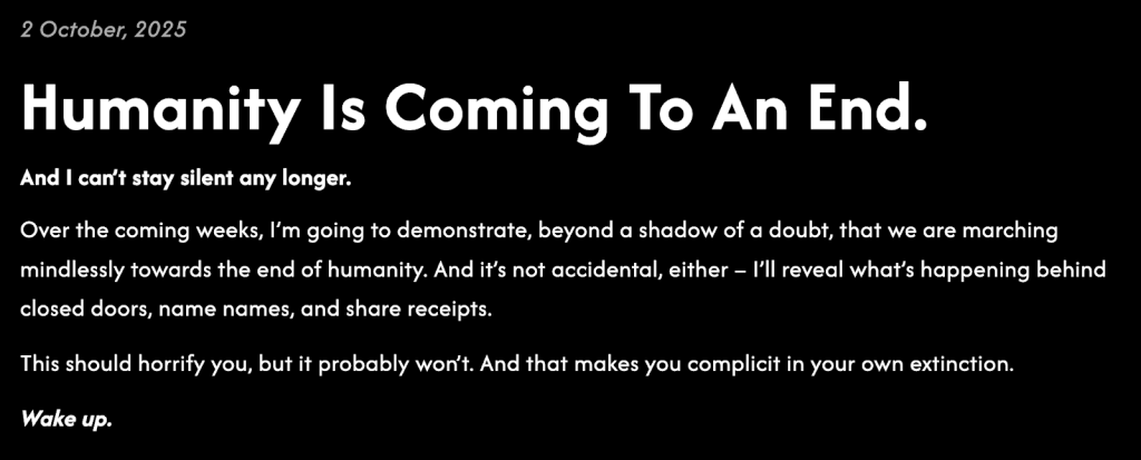 People curious enough to go to the link would find an open letter, written by an ‘anonymous whistleblower’, that warned of a future where reckless innovation could lead to mass unemployment, social destabilization, and the slow extinction of human purpose.