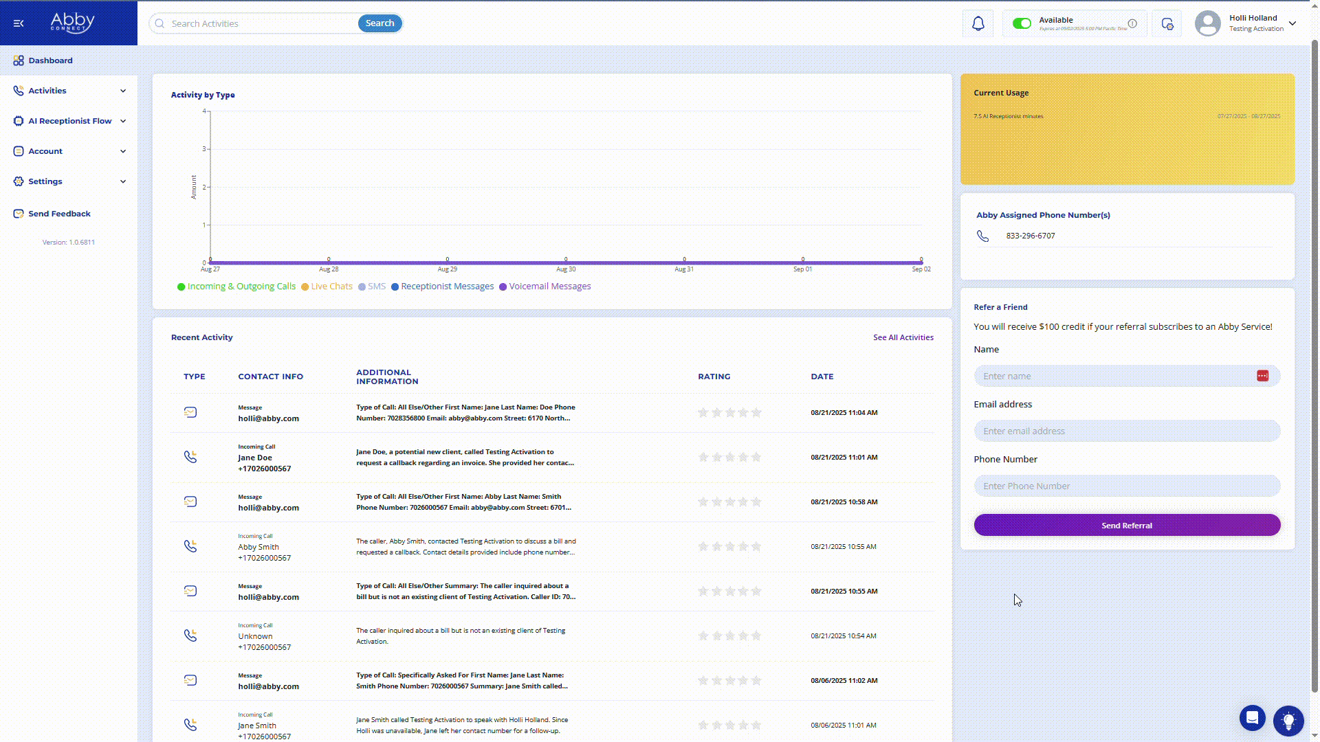 Abby offers a comprehensive suite of solutions for legal professionals: Live Human Receptionist service, AI Receptionist, and Live Web Chat solution.